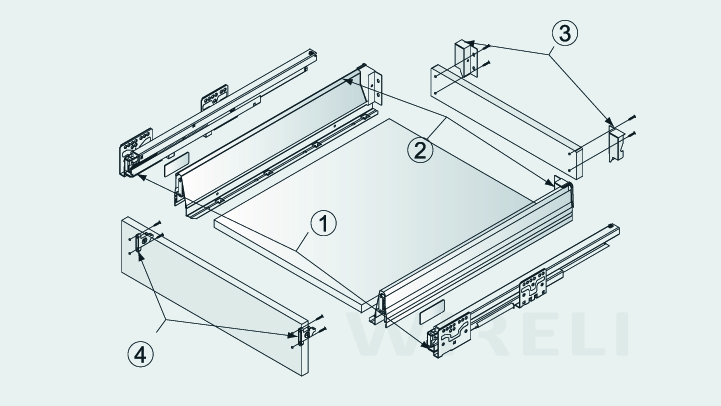 | 1. Teljes kihúzású fiókcsúszó, integrált csillapítással | 1 pár | ![]() |